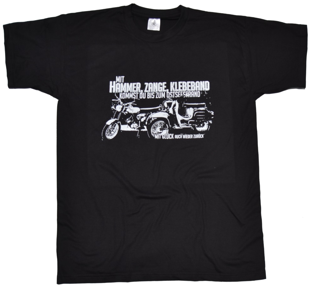 vorn großer Motiv-Druck: S51 und Schwalbe - Mit Hammer, Zange, Klebeband kommst Du bis zum Ostseestrand ...mit Glück auch wieder zurück ! -